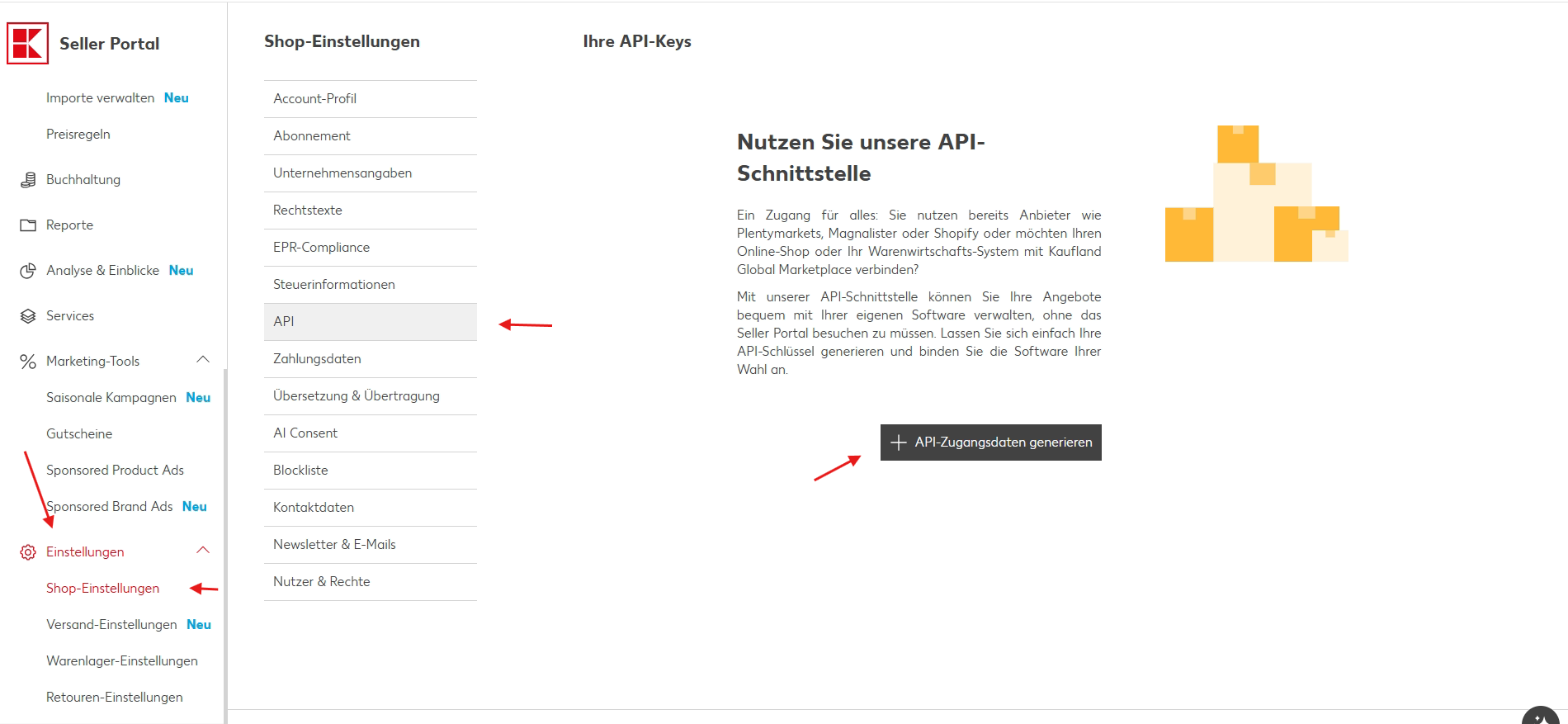 4. Klicken Sie auf den Button „API-Zugangsdaten generieren“.